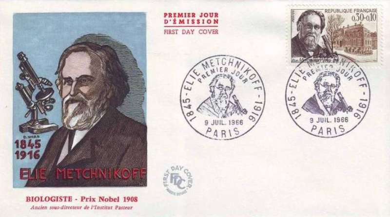 | Commentaire | Surtaxe au profit de la Croix-Rouge française Tu savais qu’un des fondateurs de l’immunologie moderne était un biologiste ukrainien passionné par... les étoiles de mer ? Oui, sérieux. En 1882, Elie Metchnikoff observe des cellules d’astérie avaler une épine de rosier, et là – bingo ! – il devine le principe de la phagocytose : le fait que certaines cellules "mangent" les microbes. Bon, à l’époque, personne n’y croit. Trop nouveau, trop bizarre. Et puis lui, il insiste. Il pousse l’idée, il expérimente, il se plante parfois (un scandale avec des moutons vaccinés…), mais il ne lâche rien. Chassé de Russie, accusé à tort, il finit à Paris, accueilli à bras ouverts par Pasteur en personne. Et là, il explose. Il dirige des labos, publie un traité sur l’immunité, fait des polémiques à rallonge (ah ça, il avait le sang chaud), et surtout il bosse sur... le vieillissement. Oui oui, avant même qu’on invente les crèmes anti-rides. Il pense que le vieillissement vient de toxines produites par les microbes intestinaux, et il propose de boire des yaourts aux ferments lactiques. Un siècle avant Danone. Un détail rigolo : il croyait sincèrement qu’une religion du futur, fondée sur la science, pourrait unir les humains. Un peu utopique, d’accord. Mais touchant, non ? Charles Nicolle, prix Nobel lui aussi, l’appelait "le maître d’enthousiasme" – c’est dire. Et en 1908, Metchnikoff reçoit le Nobel, partagé avec Ehrlich. Deux visions, deux approches de l’immunité, mais un même combat contre la maladie. Alors voilà, un savant barbu, exilé, mal compris au départ, qui bidouille des étoiles de mer… et finit par changer la médecine moderne. Comme quoi, une épine dans l’eau peut parfois piquer très loin. WikiTimbres |