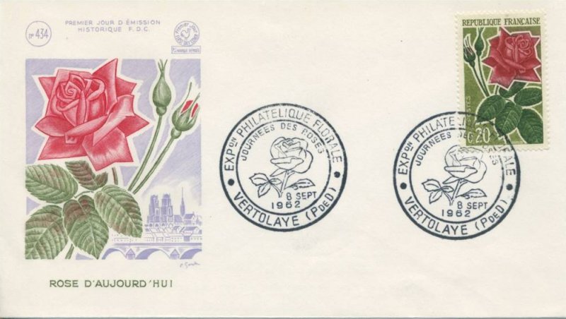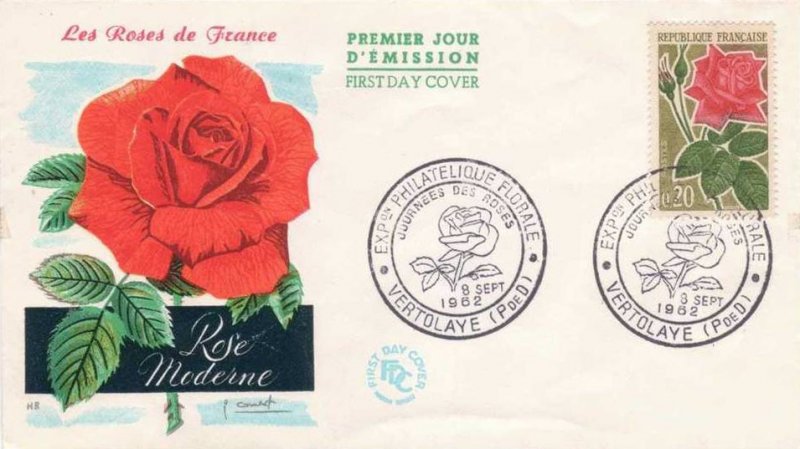 | Description | Rose moderne. Oblitération 1er jour à Vertolaye (Puy-de-Dôme) |