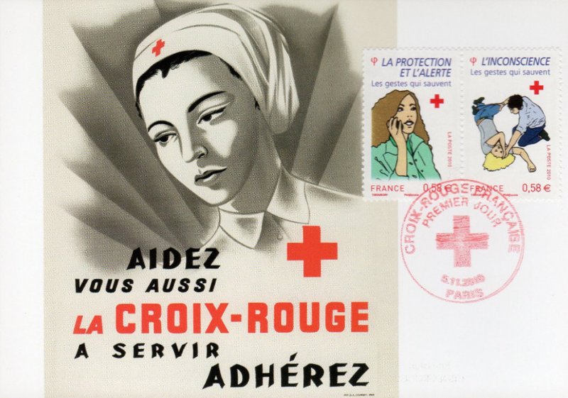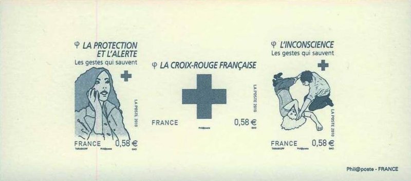 | Commentaire | (5 timbres à 0,58 € + 2,00 € de don reversés à la Croix-Rouge française) PREMIER JOUR : 5 novembre 2010 Vente Anticipée : au Salon d’Automne - Paris (Porte de Champerret) et le Carré d’Encre -Paris. VENTE NATIONALE à partir du 8 novembre 2010, |