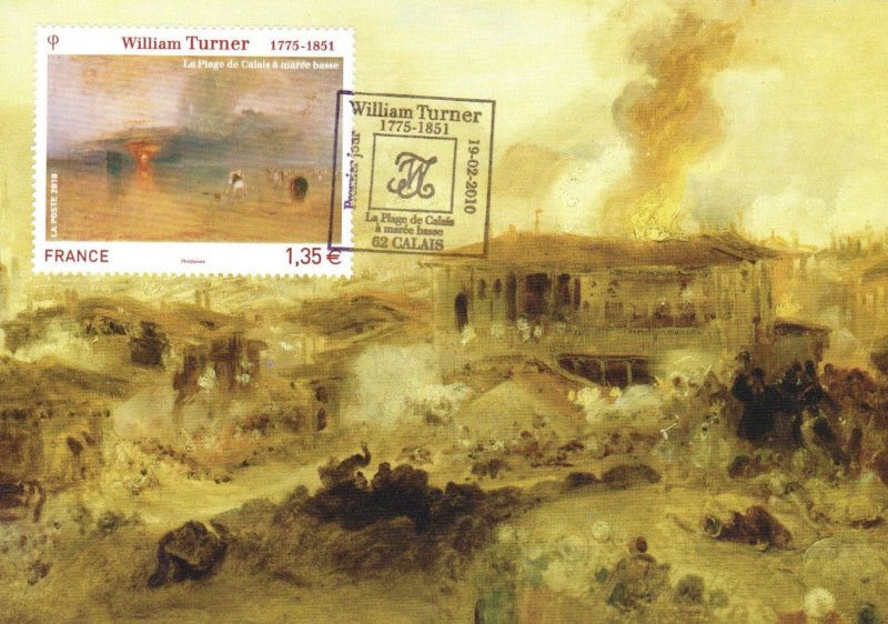 Il évoque avec une grande maîtrise technique les coups de lumière sur la mer, les tempêtes, les paysages montagneux baignés d’une lumière aurorale, crépusculaire ou lunaire. Turner se rendit en France et en Suisse et ne cessa, dès lors, de voyager sur le continent, en rapportant une multitude de croquis et d’aquarelles d’une facture très libre.