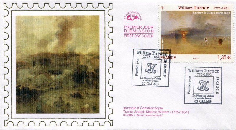 Existe également sur papier gommé. PREMIER JOUR : 19 & 20 février 2010 Vente Anticipée : Calais (62100) et à Paris Le Carré d’Encre Bureau de Poste Temporaire : Musée des Beaux arts rue Richelieu- 62100 CALAIS