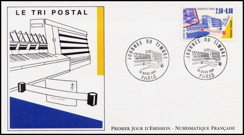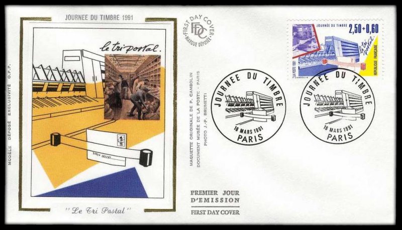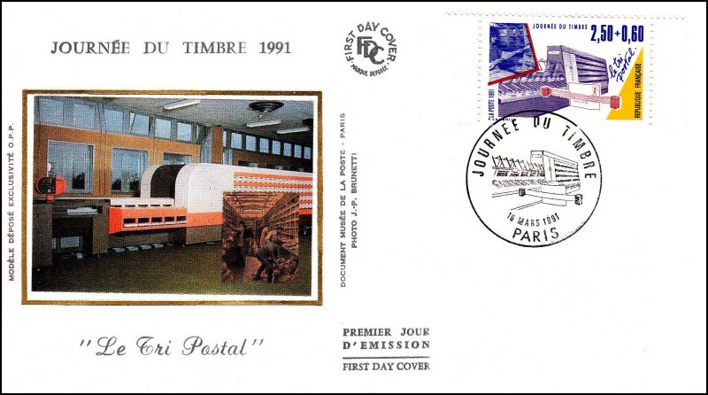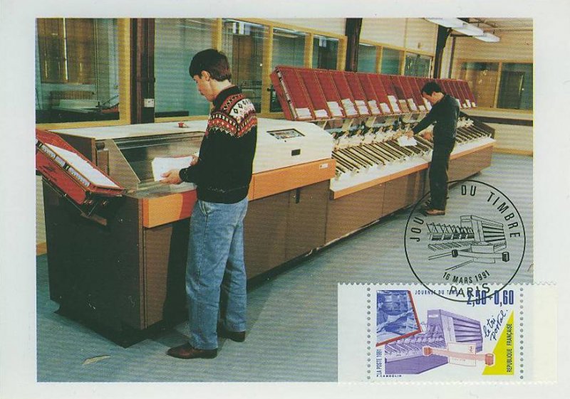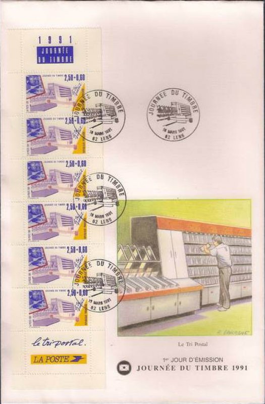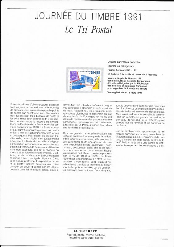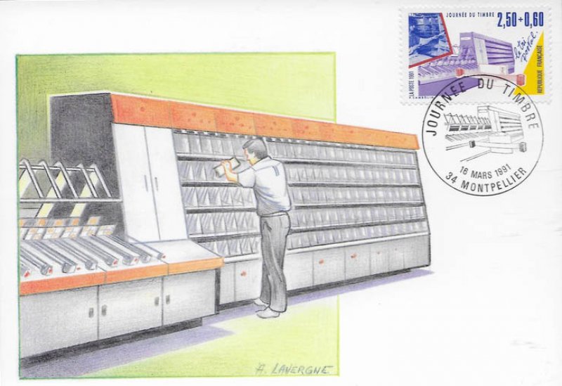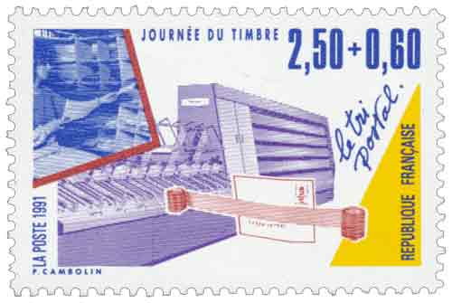 | Description | Journée du Timbre 1991. Les Métiers de la Poste - Le tri postal (provenant de carnet) |