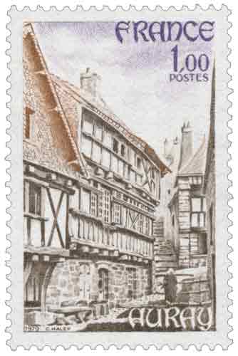 | Commentaire | Le timbre émis en 1979 consacré à Auray s’inscrit dans la série touristique dédiée aux villes et sites remarquables de France et met en lumière le port de Saint-Goustan, cœur historique et emblématique de la cité morbihannaise. Implantée au fond d’un ria débouchant sur le golfe du Morbihan, Auray doit son développement médiéval à cette situation portuaire protégée, favorable au commerce maritime et fluvial lorsque la navigation côtière privilégiait les estuaires profonds. La composition gravée restitue avec précision la descente vers le port par la rue Saint-René, montrant des maisons anciennes aux façades à colombages, encorbellements et toitures aiguës, typiques de l’architecture bretonne des XVe et XVIe siècles. Le choix de ce point de vue souligne la continuité urbaine entre la ville haute et le port, lieu d’échanges, d’ateliers et d’auberges, encore vivant à la fin du XXe siècle. Le timbre évoque aussi, de manière sous-jacente, l’importance historique de Saint-Goustan comme point de passage vers l’Atlantique : Isaac de Razilly y embarqua en 1632 pour l’Acadie et Benjamin Franklin y débarqua en 1776 afin de solliciter l’aide française pour l’indépendance américaine. Par son traitement en taille-douce, la gravure met en valeur les volumes architecturaux et la texture des matériaux, renforçant l’atmosphère pittoresque et intemporelle du site. Utilisé pour l’affranchissement courant des lettres simples, ce timbre participe à la diffusion d’une image patrimoniale de la Bretagne, associant histoire maritime, urbanisme ancien et attractivité touristique, dans un esprit fidèle à la vocation culturelle et documentaire de la philatélie française de la fin des années 1970. Article rédigé pour WikiTimbres |
