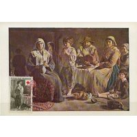 | Commentaire | Ce timbre est grevé d'une surtaxe au profit de la Croix Rouge française "Jeune paysan" - un détail de "La Famille de paysans" (v.1642) de Louis LE NAIN (Laon v.1603-Paris, le 23 mai 1648, peintre). Louis LE NAIN et ses deux frères Antoine (v.1597) et Mathieu (v.1607) sont trois peintres français du début du XVIIe siècle. L'oeuvre des frères Le Nain illustre la vocation d'un art qui fut constant dans sa passion du vrai. À l'encontre du réalisme italianisant ou flamand, cette peinture de genre, d'une simplicité presque banale, sut toucher par son côté humain plutôt que pittoresque. |