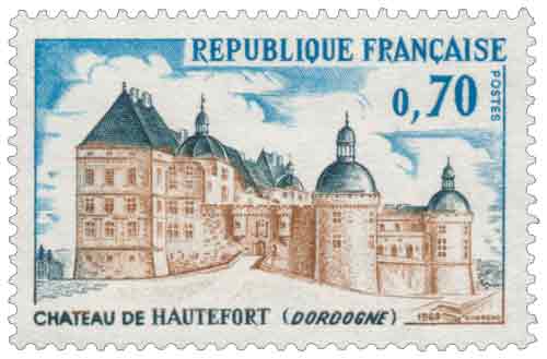 | Commentaire | Le timbre français émis en avril 1969 représentant le château de Hautefort s’inscrit dans la politique commémorative et patrimoniale de la Poste visant à mettre en valeur les grands sites monumentaux français, en l’occurrence un édifice emblématique du Périgord dont l’histoire mêle héritage médiéval et architecture classique du XVIIᵉ siècle ; choisi quelques mois seulement après l’incendie qui ravagea gravement le château dans la nuit du 30 au 31 août 1968, le sujet prend une dimension particulière en rappelant à la fois la splendeur architecturale du monument, souvent qualifié de « Versailles du Périgord », et l’émotion suscitée par sa destruction partielle, au moment même où il était largement ouvert au public et reconnu comme un haut lieu du tourisme culturel régional, l’émission soulignant ainsi la place du timbre comme vecteur de mémoire collective et de sensibilisation au patrimoine, la vente anticipée organisée à Hautefort renforçant le lien symbolique entre le monument, son territoire et la commémoration postale. Article rédigé pour WikiTimbres