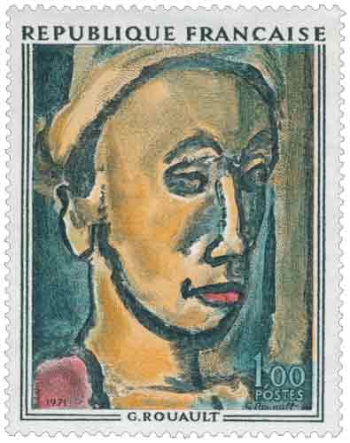 | Commentaire | Le timbre-poste français émis en 1971 reproduisant Songe creux de Georges Rouault s’inscrit dans la série artistique dite du « Musée imaginaire », par laquelle la France choisit de diffuser, à travers le timbre, des œuvres majeures de son patrimoine pictural moderne. Mis en vente générale le 7 juin 1971 après une vente anticipée le 5 juin à Paris, ce timbre d’une valeur faciale de 1 franc correspond à un affranchissement complémentaire, usage fréquent pour les émissions artistiques de grand format nécessitant une impression polychrome de haute qualité. L’émission intervient l’année du centenaire de la naissance de Rouault, figure singulière de la peinture française du XXᵉ siècle, dont l’œuvre se situe à la croisée du symbolisme, de l’expressionnisme et d’une profonde inspiration spirituelle. Le choix de Songe creux, tête de clown achevée en 1946 et conservée au Musée national d’Art moderne, n’est pas anodin : il renvoie à l’un des thèmes récurrents de l’artiste, celui du pitre ou du clown, figure ambivalente à la fois dérisoire et tragique, miroir de la condition humaine. Ancien apprenti verrier, Rouault transpose dans sa peinture une structure proche du vitrail, faite de contours épais et de couleurs intenses, procédé que le timbre restitue par une gravure en taille-douce particulièrement contrastée. À travers ce visage figé, aux yeux absents ou tournés vers l’intérieur, l’œuvre exprime une méditation silencieuse sur la vacuité, la souffrance morale et l’illusion sociale, thèmes centraux dans la production de l’artiste après la Première Guerre mondiale. En choisissant cette image, l’administration postale française met en avant une vision de l’art qui ne cherche ni l’ornement ni la séduction, mais interroge le regardeur sur le sens de l’existence et sur la fragilité de l’homme face à lui-même. Ce timbre témoigne ainsi de la place accordée, au début des années 1970, à l’art moderne dans la politique culturelle nationale, tout en faisant du support postal un vecteur de diffusion d’une œuvre exigeante, marquée par une forte charge morale et spirituelle. Article rédigé pour WikiTimbres |