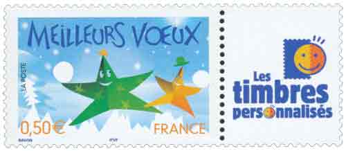 | Description | Meilleurs Vœux. Types des T.-P. de même date. Avec vignette Les timbres personnalisés |