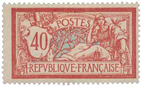 | Commentaire | Merson. Mis en vente le 4 décembre 1900, le 40 centimes rouge et bleu au type Merson est l’une des premières valeurs du nouveau grand format bicolore imaginé par Luc-Olivier Merson. Utilisé pour les affranchissements intermédiaires du régime intérieur et pour certaines correspondances internationales nécessitant un complément de port, ce timbre devient rapidement une valeur essentielle du début du XXᵉ siècle. Gravé par Auguste Thévenin, le type Merson introduit en France les premiers timbres bicolores d’usage courant, imprimés en deux passages distincts de typographie. Cette technique, encore imparfaitement maîtrisée au tournant de 1900, est à l’origine d’une grande variété d’aspects : décalages entre les deux couleurs, nuances de bleu plus ou moins foncé, rouge tirant parfois sur le carmin, et impressions incomplètes ou décentrées. Ces caractéristiques font du Merson une série particulièrement étudiée dans la philatélie classique française. Avec 71 millions d’exemplaires imprimés, le 40 c figure parmi les valeurs les plus largement diffusées du type Merson. En oblitéré, les cachets des bureaux urbains sont les plus fréquents, tandis que les plis correctement affranchis à 40 centimes représentent les usages postaux les plus recherchés, notamment pour les lettres recommandées, imprimés lourds ou correspondances internationales avant les ajustements tarifaires de 1906. Retiré de la vente le 8 décembre 1924, ce timbre reste une pièce emblématique de la transition entre les séries Sage, Mouchon et les grandes valeurs du début du XXᵉ siècle. Aucun faux postal d’époque significatif n’est signalé. |