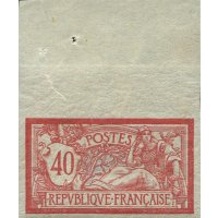 | Commentaire | Merson. Mis en vente le 4 décembre 1900, le 40 centimes rouge et bleu au type Merson est l’une des premières valeurs du nouveau grand format bicolore imaginé par Luc-Olivier Merson. Utilisé pour les affranchissements intermédiaires du régime intérieur et pour certaines correspondances internationales nécessitant un complément de port, ce timbre devient rapidement une valeur essentielle du début du XXᵉ siècle. Gravé par Auguste Thévenin, le type Merson introduit en France les premiers timbres bicolores d’usage courant, imprimés en deux passages distincts de typographie. Cette technique, encore imparfaitement maîtrisée au tournant de 1900, est à l’origine d’une grande variété d’aspects : décalages entre les deux couleurs, nuances de bleu plus ou moins foncé, rouge tirant parfois sur le carmin, et impressions incomplètes ou décentrées. Ces caractéristiques font du Merson une série particulièrement étudiée dans la philatélie classique française. Avec 71 millions d’exemplaires imprimés, le 40 c figure parmi les valeurs les plus largement diffusées du type Merson. En oblitéré, les cachets des bureaux urbains sont les plus fréquents, tandis que les plis correctement affranchis à 40 centimes représentent les usages postaux les plus recherchés, notamment pour les lettres recommandées, imprimés lourds ou correspondances internationales avant les ajustements tarifaires de 1906. Retiré de la vente le 8 décembre 1924, ce timbre reste une pièce emblématique de la transition entre les séries Sage, Mouchon et les grandes valeurs du début du XXᵉ siècle. Aucun faux postal d’époque significatif n’est signalé. |