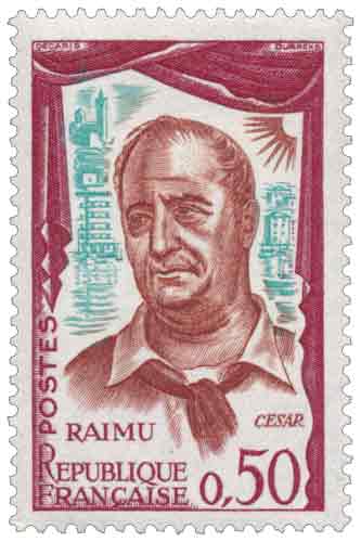 | Commentaire | Émis en France en 1961 dans la série des acteurs célèbres et leurs rôles, le timbre consacré à Raimu s’inscrit dans une politique commémorative visant à célébrer les grandes figures du spectacle ayant marqué durablement la culture populaire française, en choisissant de représenter l’acteur dans le rôle de César, personnage central de la trilogie marseillaise qui symbolise à la fois le théâtre de boulevard et l’essor du cinéma parlant, et en ancrant l’émission dans un lien territorial fort par une mise en vente anticipée à Toulon, ville natale de l’artiste ; ce timbre-poste gommé de 1961, gravé en taille-douce, reflète ainsi la reconnaissance institutionnelle accordée à un jeu fondé sur la puissance de la voix, la justesse des intonations et l’humanité des personnages, qualités qui ont fait de Raimu l’un des interprètes majeurs de l’œuvre de Marcel Pagnol et une figure emblématique du patrimoine théâtral et cinématographique français du XXᵉ siècle. Article rédigé pour WikiTimbres |