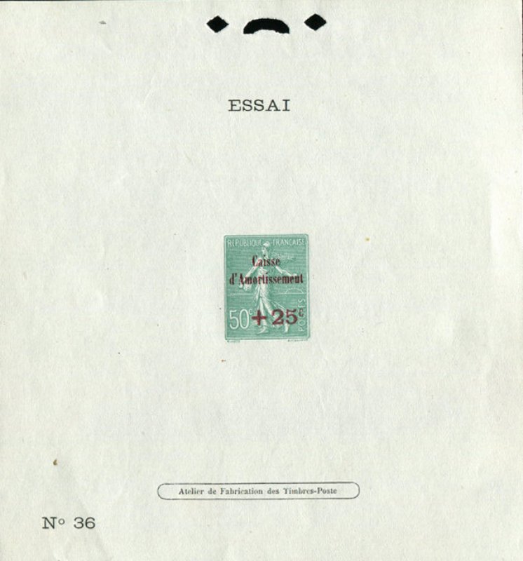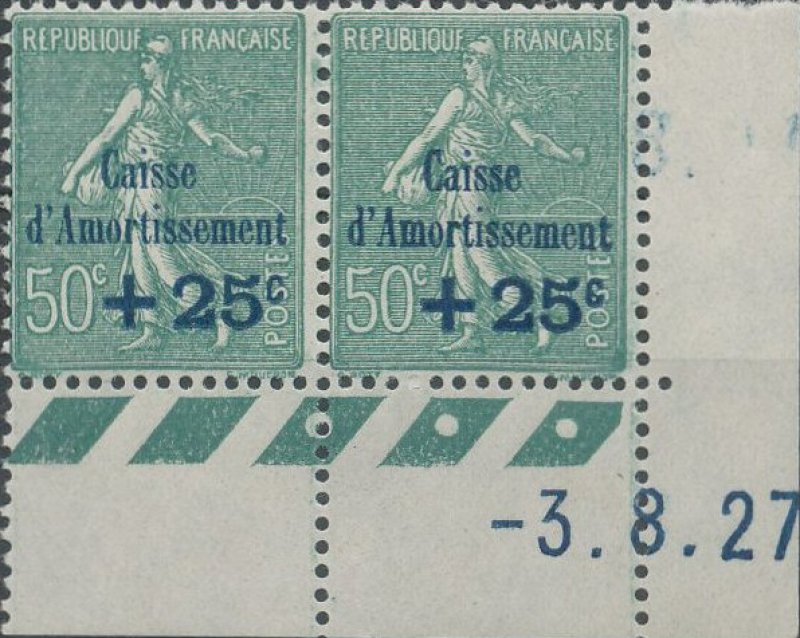 | Description | Au profit de la Caisse d'Amortissement. Type Semeuse lignée surchargée |