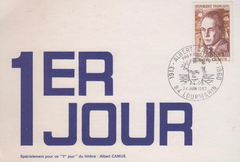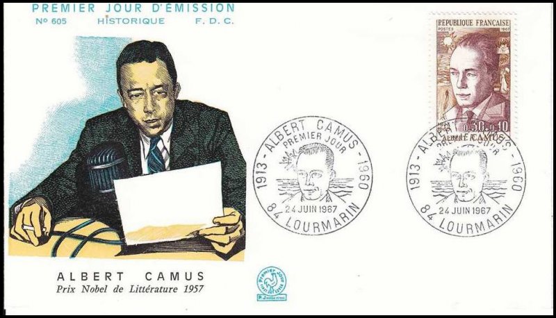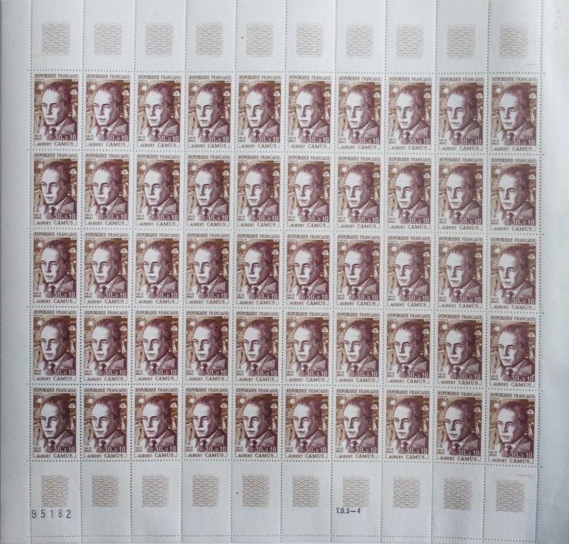 | Commentaire | Surtaxe au profit de la Croix-Rouge française. Un jour, le soleil d’Algérie a vu naître un enfant silencieux et intense qui, plus tard, allait bousculer la conscience du monde. Albert Camus, c’est ce gamin pauvre de Belcourt devenu prix Nobel, ce philosophe sans cravate qui parlait d’absurde tout en serrant la vie à pleins bras. Il n’est pas né dans les salons parisiens, Camus, mais dans la poussière, les tripes, la mer. Élevé par une mère sourde, analphabète et lumineusement digne, il a grimpé les échelons grâce à un instituteur — Louis Germain — à qui il dédiera son discours de Stockholm. À 20 ans, la tuberculose lui ronge les poumons, mais pas l’élan. Pas question de baisser les bras. Il écrit. Il joue. Il monte des pièces. Et il pense, surtout. Profondément. Avec L’Étranger, il plante Meursault sur la plage, face à un soleil qui cogne plus fort que la morale. Avec La Peste, il explore la solidarité humaine à travers l’épidémie. Et avec L’Homme révolté, il tranche dans le vif : faut-il tuer pour ses idées ? Toute sa vie, il cherchera à réconcilier justice et tendresse. Ce n’est pas un dogmatique. Il doute. Il doute avec classe. Tiens, anecdote : son dernier manuscrit Le Premier Homme a été retrouvé intact dans la voiture qui le tua. Oui, la sienne, cette Facel Vega, puissante comme un destin lancé à 180 km/h. Comme s’il fallait une fin absurde, lui qui l’avait tant traquée. Ce 4 janvier 1960, la France a perdu l’un de ses rares penseurs qui savaient que la lumière peut cohabiter avec l’ombre, et que la révolte est parfois… un acte d’amour. Et toi, tu l’as déjà lu ? WikiTimbres |