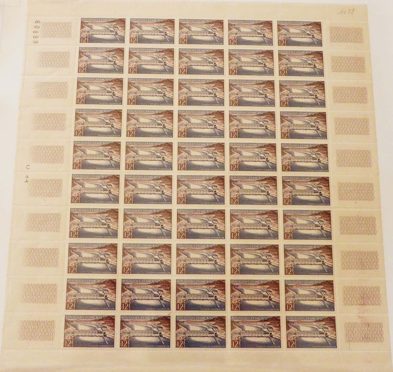 | Commentaire | Le timbre-poste « Barrage de Donzère-Mondragon » émis en France en 1956 appartient à la série des grandes réalisations techniques françaises, composée de trois figurines gravées en taille-douce et destinées à illustrer des ouvrages emblématiques du génie national dans l’après-guerre. Mis en vente à l’automne 1956, ce timbre horizontal met à l’honneur l’aménagement hydroélectrique de Donzère-Mondragon, réalisé par la Compagnie nationale du Rhône, qui constitue alors l’une des étapes majeures de la mise en valeur industrielle et énergétique du fleuve après le barrage de Génissiat. Sa place dans la série souligne l’importance stratégique de cet ouvrage, à la fois producteur d’énergie hydroélectrique, facteur d’amélioration de la navigation fluviale et outil d’irrigation, symbolisant la maîtrise progressive du Rhône par l’ingénierie française. Conçu pour l’affranchissement courant, notamment celui des cartes postales pour le régime intérieur, ce timbre associait un usage postal quotidien à une valorisation claire du progrès technique. L’émission intervient dans un contexte de modernisation accélérée des infrastructures françaises, le chantier de Donzère-Mondragon étant alors présenté comme l’une des plus puissantes installations hydroélectriques d’Europe occidentale, avec une production annuelle estimée à près de deux milliards de kilowattheures. |