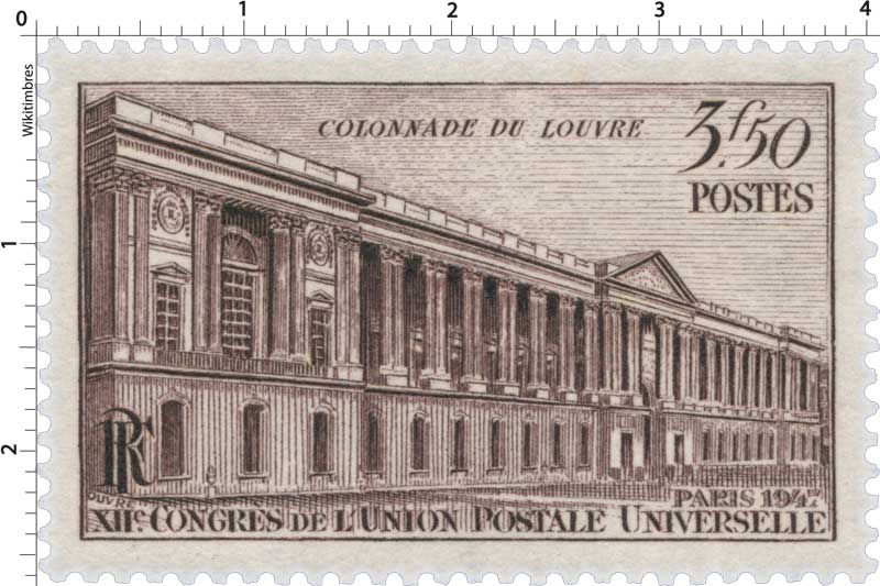 | Description | Paris 1947 - 12e Congrès de l’U.P.U (Union Postale Universelle) à Paris. Colonnade du Louvre |