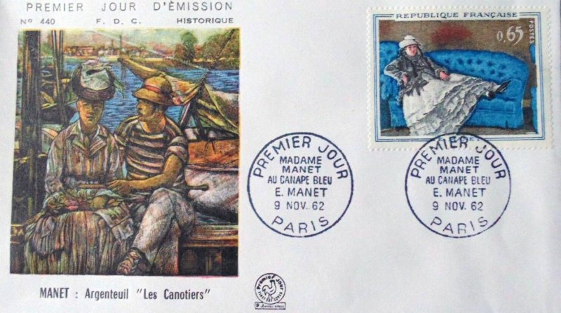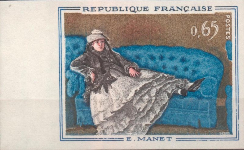 | Commentaire | Émis le 12 nov. 1962 et retiré le 12 oct. 1963, est aussi connu pour une série présentant un décalage de la couleur bleu du canapé laissant apparaître une ligne blanche qui part du le haut de la robe jusqu'à la chaussure. Le même défaut s'observe également au niveau du coude gauche.