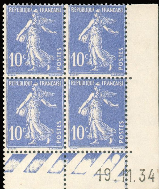 | Commentaire | Semeuse camée. Type III. Voir la vidéo "Histoires de timbres" En savoir plus sur Wikipédia : semeuse camée Émise en septembre 1932, la Semeuse fond plein – inscriptions grasses – 10 centimes outremer (YT 279) marque une nouvelle étape dans l’adaptation du type emblématique de Roty aux besoins postaux de l’entre-deux-guerres. Cette valeur de 10 c, couramment utilisée dans les affranchissements combinés ou pour compléter les tarifs, se caractérise par une impression soignée et une lisibilité renforcée grâce aux inscriptions épaissies introduites au début des années 1930. Le motif reste fidèle au dessin original d’Oscar Roty, inspiré de l’allégorie républicaine semant à contre-vent, symbole de travail et de renouveau. Ici encore, le fond plein — ou Semeuse camée — offre un contraste homogène, mettant en valeur la silhouette dynamique de la figure. L’exécution typographique assurée par Louis-Eugène Mouchon traduit une maîtrise technique indiscutable malgré les cadences industrielles élevées de l’époque. La couleur outremer, assez dense et parfois légèrement variable selon les tirages, est typique des émissions destinées à être immédiatement repérées dans les cases de carnets et tiroirs postaux. Dentelé 14 × 13½ et imprimé en feuillets de 100 timbres, ce 10 centimes s’inscrit pleinement dans la continuité du type Semeuse modernisé. Retiré de la vente le 1er octobre 1938, il reste aujourd’hui un timbre courant mais incontournable pour les collectionneurs spécialisés dans les nuances, les barres de contrôle ou les variétés de centrage. Les exemplaires frais, d’un outremer profond et bien frappé, sont particulièrement recherchés pour compléter une étude thématique des Semeuses tardives. |