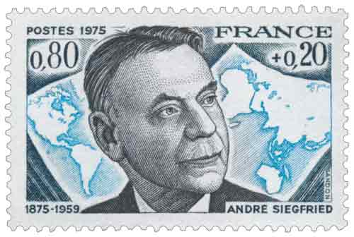 | Commentaire | Émis en France en 1975 dans la série des Personnages célèbres, le timbre consacré à André Siegfried marque le centenaire de la naissance d’une figure majeure de la pensée française du XXe siècle, dont l’œuvre a profondément renouvelé l’approche de la géographie humaine et de l’analyse politique. Le choix de cet hommage s’inscrit dans une tradition philatélique attentive aux intellectuels ayant contribué à éclairer la compréhension des sociétés contemporaines. Né au Havre, André Siegfried a développé une réflexion originale fondée sur l’observation des territoires, des structures économiques et des comportements collectifs, établissant des liens durables entre le sol, les mentalités et les formes d’organisation politique. Son enseignement à l’École libre des sciences politiques puis au Collège de France, ainsi que son rôle au sein de la Société des Nations entre les deux guerres, traduisent l’influence internationale de ses travaux et sa capacité à inscrire l’analyse française dans un cadre comparatif élargi. Le timbre évoque cette œuvre intellectuelle par un portrait sobre et rigoureux, gravé en taille-douce, technique particulièrement adaptée à la représentation des grandes figures culturelles et scientifiques. L’émission intervient à une période où la philatélie française accorde une place importante aux penseurs et aux académiciens, perçus comme des repères intellectuels et moraux dans une société en mutation. Les écrits de Siegfried sur l’Angleterre, les États-Unis, le Canada ou encore l’Inde et Israël, tout comme ses analyses de la vie politique française et européenne, ont contribué à diffuser une lecture du monde fondée sur l’observation concrète des réalités géographiques et humaines. En rappelant cette approche, le timbre souligne la pertinence durable d’une pensée qui refuse les abstractions détachées du terrain et qui considère la géographie comme un socle essentiel de la compréhension politique. Cette émission illustre ainsi la fonction culturelle du timbre-poste, support de mémoire et de transmission des grandes figures de la vie intellectuelle française. Article rédigé pour WikiTimbres |