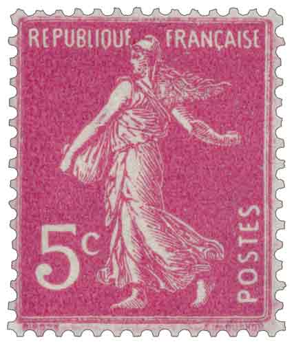 | Commentaire | Semeuse camée. Voir la vidéo "Histoires de timbres" En savoir plus sur Wikipédia : semeuse camée Émis en décembre 1934, le 5 centimes Semeuse fond plein à inscriptions grasses (YT 278B) marque la poursuite de l’évolution typographique du célèbre type de Roty dans la décennie 1930. Cette valeur de complément, destinée principalement aux affranchissements composés et aux usages de masse, accompagne la modernisation progressive de l’impression postale française durant l’entre-deux-guerres. Le dessin d’Oscar Roty, repris et adapté en typographie par Louis-Eugène Mouchon, montre la Semeuse avançant contre le vent, symbole républicain parfaitement identifié par les usagers depuis le début du XXᵉ siècle. Dans cette version « fond plein », dite aussi Semeuse camée, l’allégorie se détache sur un aplat uniforme qui renforce la lisibilité du motif. L’ajout des inscriptions grasses constitue une caractéristique marquante des tirages postérieurs à 1932, améliorant la perception des valeurs faciales dans un contexte d’impression rapide. La couleur rose, utilisée pour ce 5 c, est l’une des plus reconnaissables de la série. Si elle reste globalement stable, les collectionneurs observent parfois des nuances plus pâles ou plus soutenues liées aux variations d’encrage typographiques de la période. La fabrication en typographie, la dentelure 14 × 13½ et la présentation en feuilles de 100 sont conformes aux standards du type Semeuse des années 1930. Retiré de la vente en décembre 1937, ce timbre demeure commun dans les collections généralistes, mais les exemplaires bien centrés, d’un rose vif et sans décalage d’impression, conservent un attrait particulier pour les philatélistes spécialisés dans les Semeuses tardives. Ce 278B occupe ainsi une place intermédiaire entre les émissions de complément tarifaire et les derniers feuillets fond plein imprimés avant l’abandon progressif du type au profit de Marianne. |