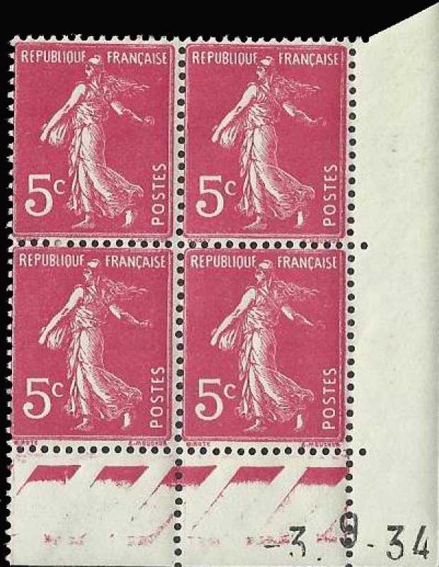 | Commentaire | Semeuse camée. Voir la vidéo "Histoires de timbres" En savoir plus sur Wikipédia : semeuse camée Émis en décembre 1934, le 5 centimes Semeuse fond plein à inscriptions grasses (YT 278B) marque la poursuite de l’évolution typographique du célèbre type de Roty dans la décennie 1930. Cette valeur de complément, destinée principalement aux affranchissements composés et aux usages de masse, accompagne la modernisation progressive de l’impression postale française durant l’entre-deux-guerres. Le dessin d’Oscar Roty, repris et adapté en typographie par Louis-Eugène Mouchon, montre la Semeuse avançant contre le vent, symbole républicain parfaitement identifié par les usagers depuis le début du XXᵉ siècle. Dans cette version « fond plein », dite aussi Semeuse camée, l’allégorie se détache sur un aplat uniforme qui renforce la lisibilité du motif. L’ajout des inscriptions grasses constitue une caractéristique marquante des tirages postérieurs à 1932, améliorant la perception des valeurs faciales dans un contexte d’impression rapide. La couleur rose, utilisée pour ce 5 c, est l’une des plus reconnaissables de la série. Si elle reste globalement stable, les collectionneurs observent parfois des nuances plus pâles ou plus soutenues liées aux variations d’encrage typographiques de la période. La fabrication en typographie, la dentelure 14 × 13½ et la présentation en feuilles de 100 sont conformes aux standards du type Semeuse des années 1930. Retiré de la vente en décembre 1937, ce timbre demeure commun dans les collections généralistes, mais les exemplaires bien centrés, d’un rose vif et sans décalage d’impression, conservent un attrait particulier pour les philatélistes spécialisés dans les Semeuses tardives. Ce 278B occupe ainsi une place intermédiaire entre les émissions de complément tarifaire et les derniers feuillets fond plein imprimés avant l’abandon progressif du type au profit de Marianne. |