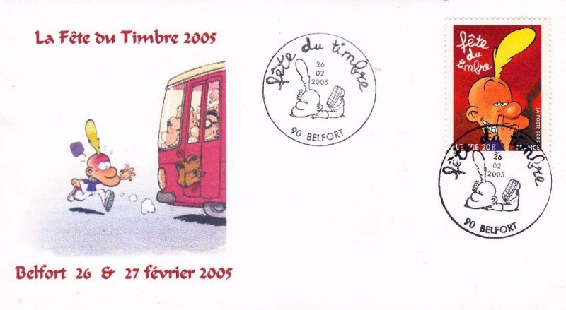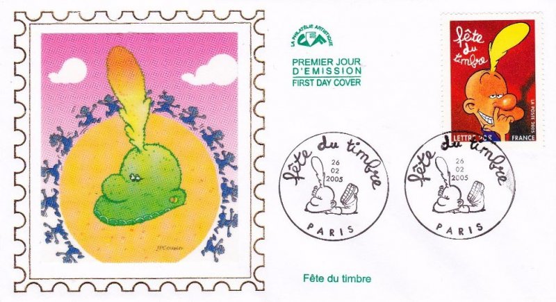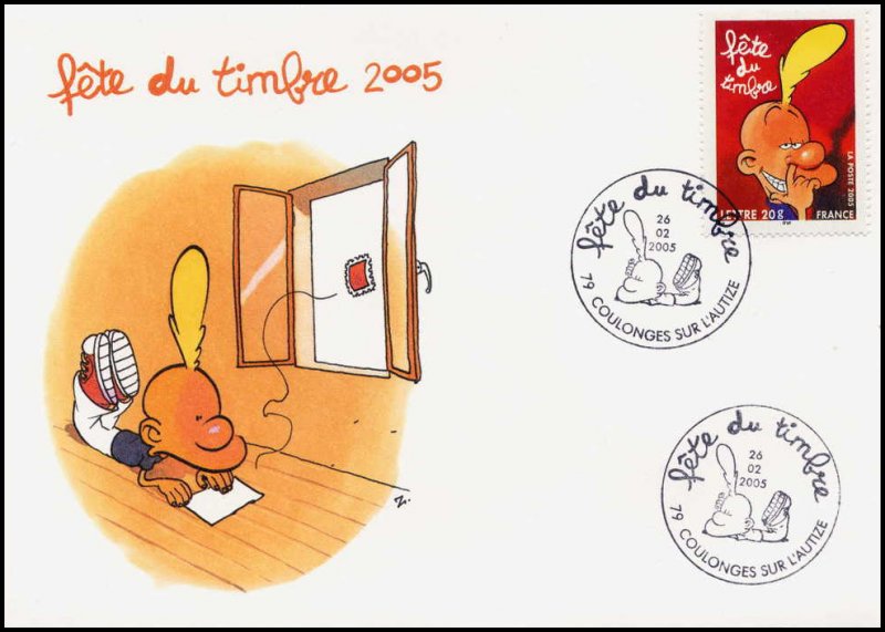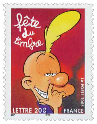 | Description | Fête du Timbre 2005. Bande dessinée. Titeuf, du dessinateur Zep. Sans valeur indiquée (validité permanente). Titeuf par Zep © France Animation/Éditions Glénat/France 3/Canal J/Smec. |