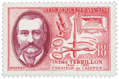 | Commentaire | Le timbre-poste consacré à Octave Terrillon, émis en avril 1957 dans la série dédiée aux savants et inventeurs français, rend hommage à l’un des grands rénovateurs de la chirurgie moderne. Chirurgien des hôpitaux de Paris et professeur à la Faculté de médecine, Terrillon joua un rôle décisif dans l’introduction et la généralisation de l’asepsie chirurgicale à la fin du XIXᵉ siècle, à une époque où les infections postopératoires faisaient encore des ravages. S’appuyant sur les travaux de Pasteur démontrant l’origine microbienne des septicémies, il démontra dès 1874 la supériorité de l’asepsie sur l’antisepsie, en privilégiant la prévention de la contamination plutôt que sa correction a posteriori. Il mit au point et utilisa dès 1883 des procédés fondés sur l’ébullition et la stérilisation à haute température, qui l’amenèrent à concevoir les premiers autoclaves chirurgicaux et à promouvoir l’usage d’instruments entièrement métalliques, facilement stérilisables. La figurine, gravée en taille-douce par Claude Hertenberger, associe le portrait du chirurgien à l’évocation de ces innovations techniques majeures, symboles de la transformation radicale des pratiques opératoires. Ce timbre rappelle ainsi l’apport fondamental de Terrillon à la sécurité des actes chirurgicaux et à la diffusion internationale de l’asepsie, dont les principes constituent encore aujourd’hui un socle incontournable de la médecine moderne. |