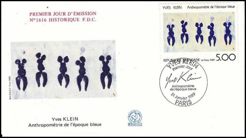 | Description | Anthropométrie de l'époque bleue œuvre d'Yves Klein (1928-1962), artiste et peintre, né à Nice. Œuvre exposée au musée Pompidou |