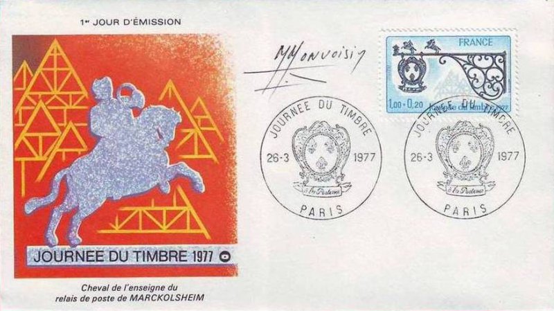| Description | Journée du timbre, 1977. Enseigne du relais de poste à Marckolsheim (Bas-Rhin) |