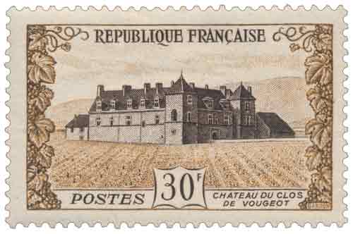 | Commentaire | Mis en vente en France à partir du 17 novembre 1951 à Vougeot en Côte-d’Or, puis du 19 novembre dans l’ensemble des bureaux du territoire, le timbre-poste commémorant le quatrième centenaire des bâtiments abbatiaux du Château du Clos de Vougeot s’inscrit dans les émissions françaises dédiées au patrimoine monumental et viticole. Dessiné et gravé en taille-douce par Pierre Gandon, ce timbre horizontal de 30 francs représente le logis abbatial du clos au cœur de son vignoble, soulignant le rôle fondateur des moines cisterciens dans l’aménagement et la mise en valeur de ce terroir dès le XIIᵉ siècle. L’émission accompagne la célébration d’un ensemble architectural mêlant héritages roman, gothique et Renaissance, dont la richesse provient exclusivement du travail de la vigne et de la production vinicole. Intégré au service postal courant, ce timbre associe usage fonctionnel et valorisation culturelle, en rappelant l’importance historique du Clos de Vougeot dans l’identité de la Bourgogne viticole et dans la tradition gastronomique française, notamment à travers la confrérie des Chevaliers du Tastevin qui perpétue la notoriété du site.