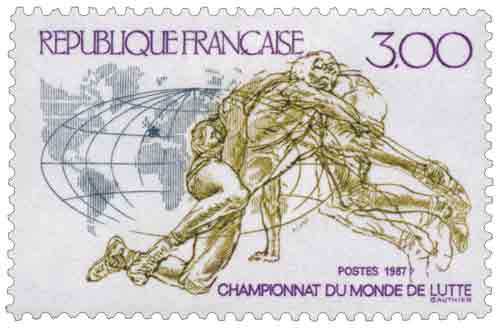 | Commentaire | Historique : la Fédération Internationale de Lutte Amateur (FILA), fondée en 1912, fête cette année son 75e anniversaire. La première langue officielle est le français et elle eut un Français, Roger Coulon, pour président de 1952 à 1971. C'est pourquoi elle a choisi de célébrer solennellement cet anniversaire à l'occasion des championnats du monde 1987, dont elle a confié pour la première fois l'organisation à la France. Ils se dérouleront du 19 au 29 août à Clermont-Ferrand (63-Puy-de-Dôme). Ce timbre est émis à l’occasion des championnats du monde de lutte organisés à Clermont-Ferrand du 19 au 29 août 1987, événement marquant à double titre dans l’histoire sportive internationale. Il célèbre d’une part la tenue en France, pour la première fois, de cette compétition mondiale placée sous l’égide de la Fédération internationale de lutte amateur, fondée en 1912 et historiquement attachée à la langue française, et d’autre part le soixante-quinzième anniversaire de cette organisation. Le choix de Clermont-Ferrand s’inscrit dans une volonté de décentralisation des grandes manifestations sportives et de mise en valeur des territoires, tout en affirmant le rôle de la France dans la gouvernance et la diffusion des sports olympiques. Ce timbre renvoie à une discipline considérée comme l’une des plus anciennes pratiques sportives connues, présente dans de nombreuses civilisations et associée, dès l’Antiquité, à des dimensions rituelles et symboliques. La lutte y apparaît comme un sport universel, décliné en styles codifiés, dont la lutte gréco-romaine et la lutte libre, toutes deux inscrites au programme des Jeux olympiques modernes dès leur origine. L’émission de 1987 rappelle également la place centrale de la lutte dans le paysage sportif mondial, tant par le nombre de nations participantes que par la richesse technique issue du croisement de traditions très anciennes. Par cette commémoration, la politique postale française met en lumière un sport à la fois millénaire et contemporain, dont la permanence témoigne de la continuité des échanges culturels et sportifs entre les peuples, tout en inscrivant l’événement de Clermont-Ferrand dans la mémoire philatélique nationale. Article rédigé pour WikiTimbres |