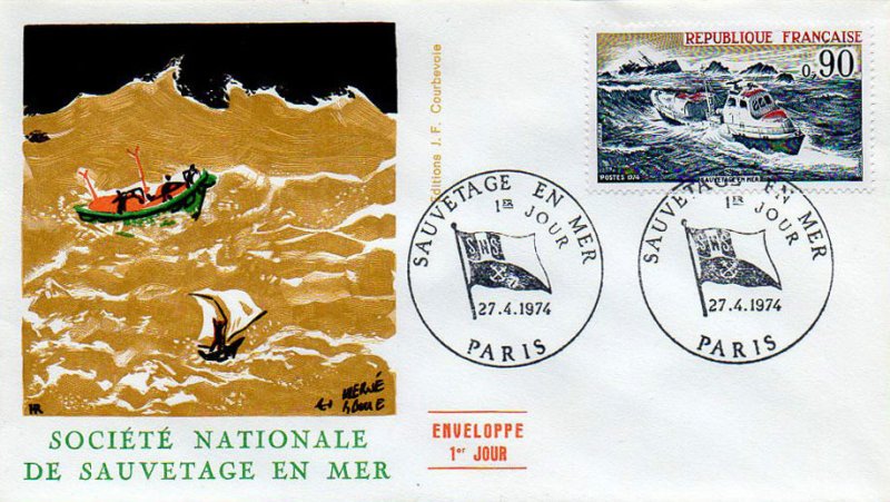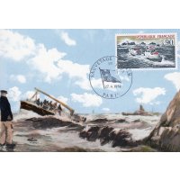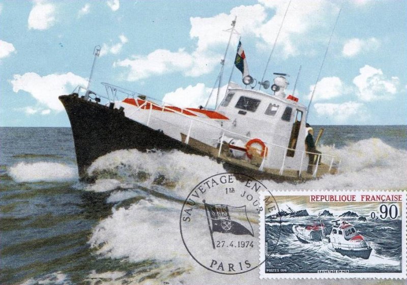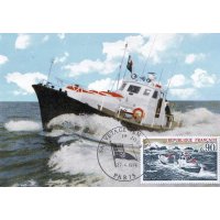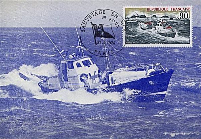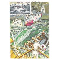 | Commentaire | Le navire est le PIERRE LOTI, construit en 1973, équipé de 2 moteurs Diesel de 265 chevaux pour une vitesse de 14,5 nœuds. Il était basé à Saint-Jean-de-Luz jusqu'à son remplacement en septembre 99. Visuel : il représente, ralliant un navire en détresse, le prototype de canot "tous temps", entré en service en 1971. Il mesure 15 m et son tonnage est de 20 t - il a fait preuve de la capacité de sa coque en acier, de ne pas chavirer. Il peut se déplacer à une vitesse de 15 nœuds, grâce à 2 moteurs de 250 CV - il est doté d'un radar et de tous les équipements modernes répondant à ses missions. Les équipages de la SNSM sont entièrement bénévoles, accomplissant une mission analogue à celle des pompiers et de la Croix-Rouge.