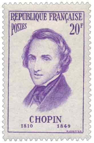 | Commentaire | Le timbre-poste « Frédéric Chopin » émis en France en 1956 appartient à une série de six figurines consacrées aux célébrités étrangères ayant participé à la vie française, gravées en taille-douce et illustrant l’apport d’artistes venus d’autres pays à la culture nationale. Mis en vente à l’automne 1956, ce timbre de format vertical rend hommage au compositeur et pianiste d’origine polonaise, installé à Paris à partir de 1831, où il développa l’essentiel de son œuvre et exerça une influence déterminante sur la vie musicale du XIXᵉ siècle. Sa place dans la série souligne le rôle central de Paris comme foyer artistique européen, Chopin y trouvant à la fois un public, des interprètes et un environnement intellectuel propices à la maturation de son style, profondément novateur pour l’écriture pianistique. Destiné notamment à l’affranchissement de la carte postale pour le régime intérieur et l’Afrique du Nord, ce timbre associait un usage postal courant à une forte dimension culturelle. L’émission rappelle ainsi l’ancrage français d’un compositeur dont la musique, intimement liée au piano, a marqué durablement le romantisme européen et continue d’occuper une place essentielle dans le répertoire universel. |