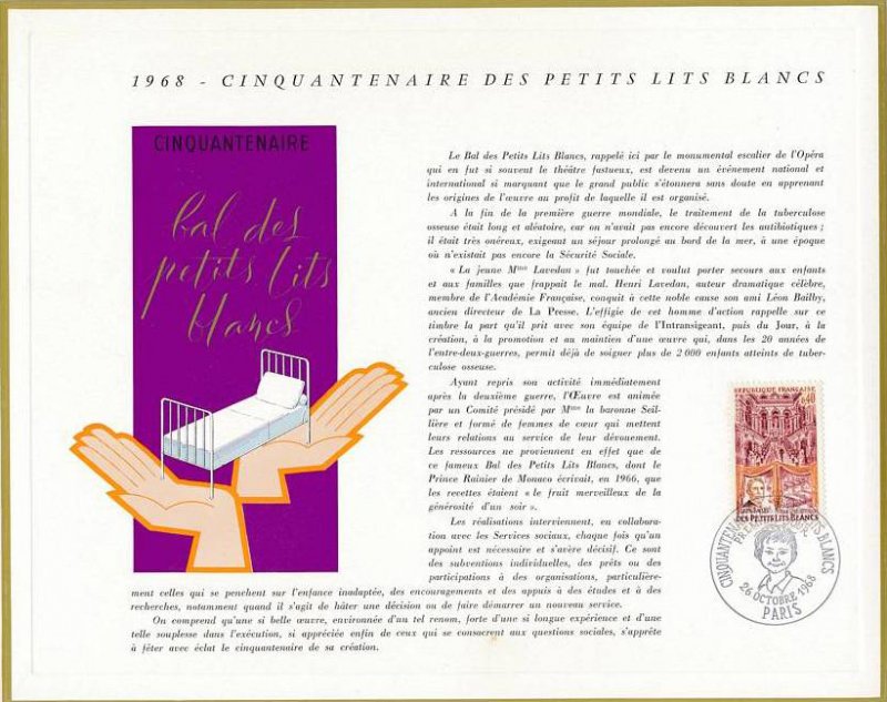 | Commentaire | Tu sais, parfois un simple bal peut changer des vies. Littéralement. Celui des Petits Lits Blancs, par exemple — tu connais ? Moi non plus, à vrai dire, jusqu’à ce que je tombe sur un vieux papier qui parlait de son cinquantenaire en 1968. J’ai creusé un peu. Et là... surprise. À l’origine, c’était une idée de « la jeune Mme Lavedan ». On est juste après la Première Guerre mondiale, les antibiotiques n’existent pas encore, et la tuberculose osseuse — un fléau — ruine pas mal de gamins. Elle, elle voit ça, elle veut aider. Avec son mari Henri Lavedan (un auteur dramatique très côté à l’époque), elle monte une œuvre caritative. Pas un machin administratif chiant. Un bal. Chic. Parisien. Et très efficace. Avec le soutien d’un certain Léon Bailby (journaliste et homme de presse), ils rassemblent assez de monde et de fric pour soigner, rien qu’entre les deux guerres, plus de 2 000 enfants malades. Pas mal, non ? Et après 1945, l’œuvre redémarre, boostée par des femmes très connectées — genre baronne Seillière & co. Et toujours le même principe : un bal somptueux pour récolter un max de dons en une nuit. Le Prince Rainier lui-même disait que c’était « le fruit merveilleux de la générosité d’un soir ». Rien que ça. Ce qui m’a bluffé, c’est la souplesse du truc. Ils financent des soins, bien sûr, mais aussi des recherches, des projets sociaux, des coups de pouce à des structures qui n’auraient jamais vu le jour autrement. Ils réagissent vite, ils sentent le besoin. Pas de bureaucratie, juste de l’action. Et beaucoup, beaucoup de cœur. Alors ouais, aujourd’hui ça sonne peut-être un peu guindé, « Bal des Petits Lits Blancs »… mais derrière, y’a une vraie histoire. Et surtout, des gamins qui ont pu se lever un matin, respirer à plein poumons, et vivre leur vie. Rien que pour ça… WikiTimbres |