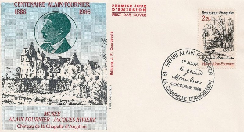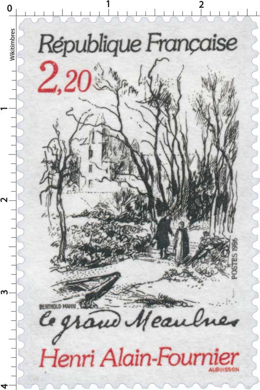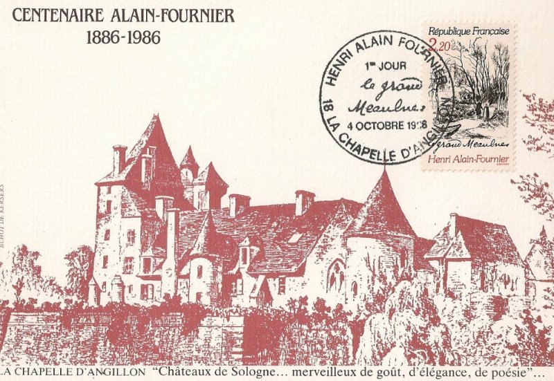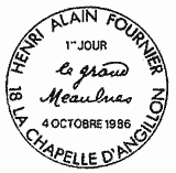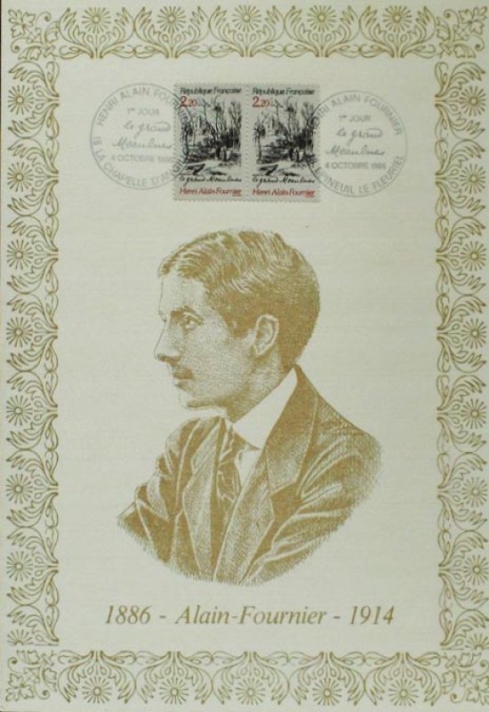 | Description | Centenaire de la naissance d'Henri Alain-Fournier (1886-1914), né à La Chapelle-d'Angillon (Cher). Son unique roman le Grand Meaulnes |