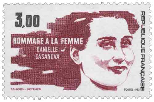 | Commentaire | Émis à l’occasion de la Journée internationale des femmes de 1983, ce timbre rend hommage à Danielle Casanova, figure emblématique de la Résistance française, dont le parcours illustre l’engagement féminin dans la lutte contre l’occupation et le totalitarisme. Née en 1909 à Ajaccio, Danielle Casanova s’impose très tôt comme une militante active au sein des mouvements étudiants et politiques de l’entre-deux-guerres, tout en poursuivant une formation de chirurgienne-dentiste à Paris. Son action se déploie à la fois dans le champ social, par son activité médicale auprès des populations modestes, et dans le champ politique, par l’organisation et l’animation de réseaux féminins engagés contre le fascisme et pour la paix. À partir de 1940, son engagement entre dans la clandestinité, marquant une étape décisive de son combat au sein de la Résistance, notamment par la création de structures féminines et la diffusion de la presse clandestine. Arrêtée en 1942, internée puis déportée à Auschwitz en janvier 1943, elle meurt quelques mois plus tard du typhus, à l’âge de trente-quatre ans, après avoir consacré ses dernières forces à soutenir moralement et médicalement ses compagnes de captivité. Ce timbre s’inscrit dans la politique commémorative française du début des années 1980, attentive à la reconnaissance des femmes résistantes et à la transmission de leur mémoire dans l’espace public. En associant explicitement cette émission à la Journée internationale des femmes, l’administration postale souligne la dimension universelle de cet engagement, au croisement de la lutte pour la liberté, de l’égalité et de la dignité humaine, tout en rappelant le rôle essentiel des femmes dans l’histoire de la Résistance française. Article rédigé pour WikiTimbres |