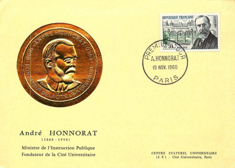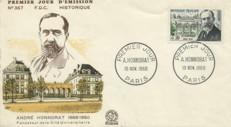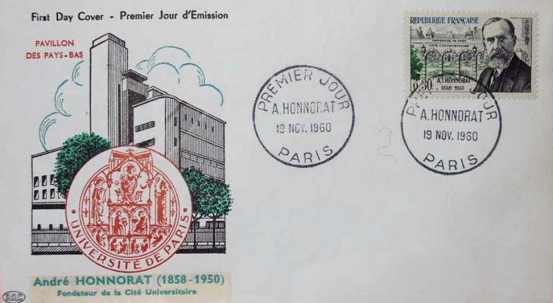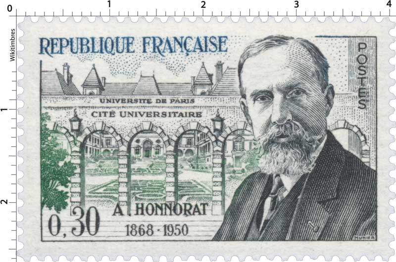 | Description | 10e anniversaire de la mort d’André Honnorat (1868-1950), homme politique, né à Paris et représentation de la cité universitaire de Paris |