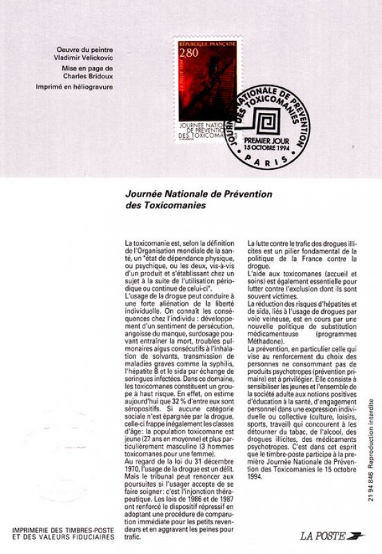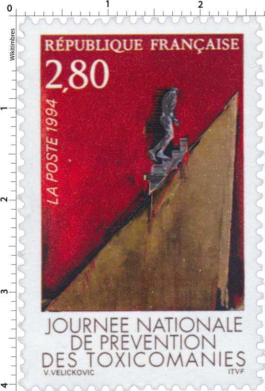| Description | Journée nationale de prévention des toxicomanies. Œuvre de Vladimir Velickovic, peintre yougoslave, né en 1935 |