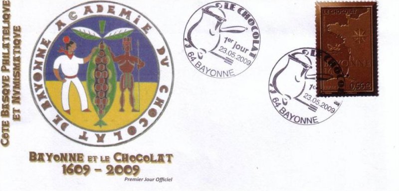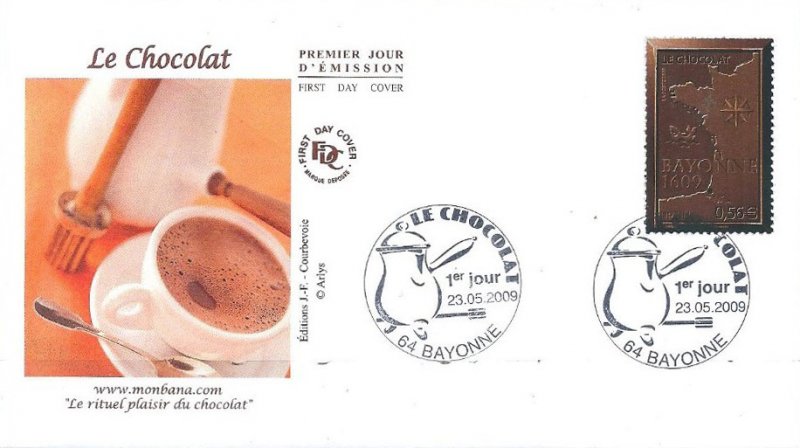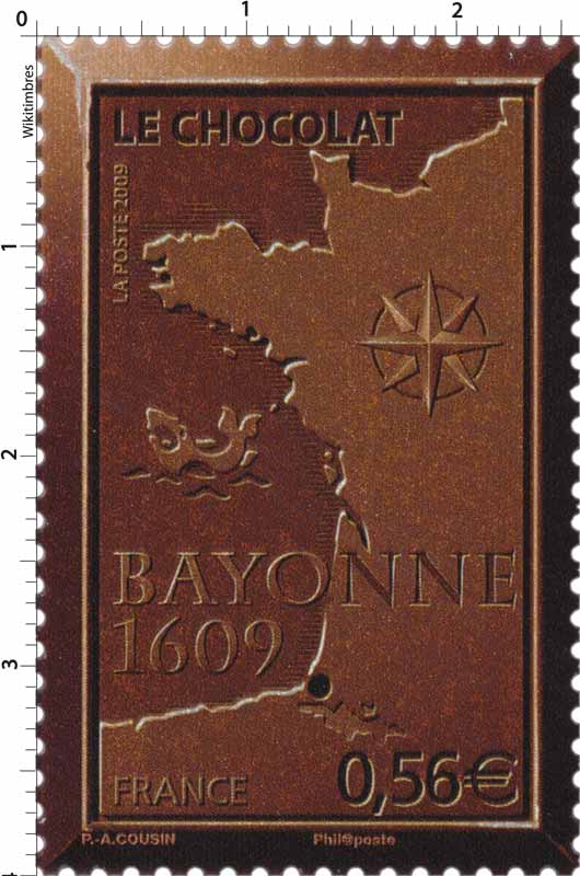 | Description | Le chocolat : carte de France mentionnant Bayonne 1609. C'est en 1609, à Bayonne, que le chocolat entre pour la première fois en France |