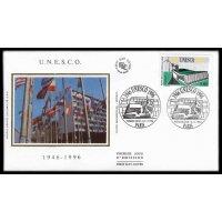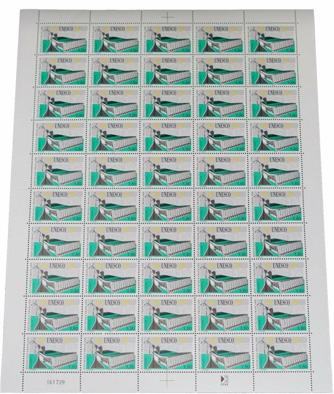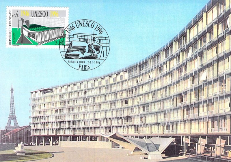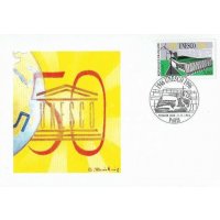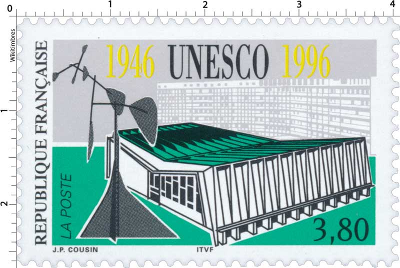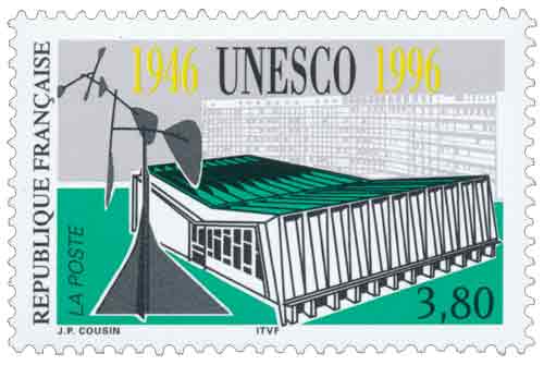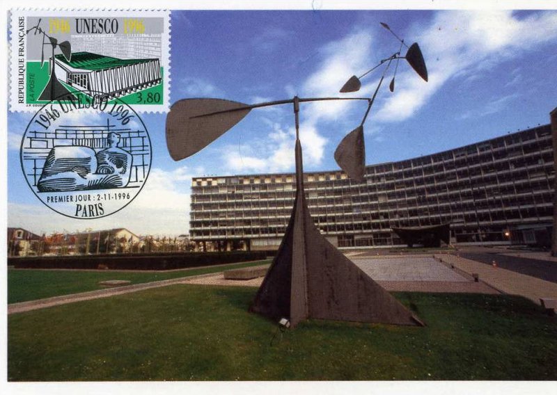 | Description | Cinquantenaire de l'Unesco (1946-1996), Organisation des Nations Unies pour l'éducation, la science et la culture. Représentation du siège à Paris et du mobile d'Alexander Calder |