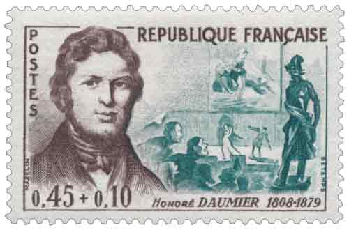 | Commentaire | Voir la vidéo "histoire de timbres" Émis en 1961 avec surtaxe au profit de la Croix-Rouge française, le timbre consacré à Honoré Daumier s’inscrit dans la tradition des émissions françaises honorant les grandes figures culturelles du XIXᵉ siècle, en mettant en avant un artiste dont l’œuvre a profondément marqué l’histoire de la caricature, de la lithographie et de la peinture de mœurs. Né à Marseille en 1808, Daumier s’impose dès les années 1830 comme un observateur incisif de la société et de la vie politique, notamment à travers ses milliers de lithographies publiées dans la presse satirique, en particulier Le Charivari, où il déploie une vision critique nourrie de convictions républicaines et d’un sens aigu de la justice sociale. L’émission postale de 1961 rappelle cette double dimension de son œuvre, à la fois engagée et profondément humaine, tout en soulignant une reconnaissance tardive mais désormais établie de son travail de peintre, longtemps éclipsé par sa célébrité de caricaturiste. Le choix de la taille-douce pour l’impression renforce le lien entre le timbre et l’univers graphique de Daumier, maître de la ligne expressive et du modelé vigoureux, tandis que l’arrière-plan iconographique évoque certaines de ses œuvres emblématiques, symboles d’un regard lucide et intemporel sur la société. Par son usage postal courant assorti d’une surtaxe caritative, ce timbre conjugue hommage artistique, mémoire culturelle et fonction sociale, conformément à l’esprit des émissions commémoratives françaises du début des années 1960. |