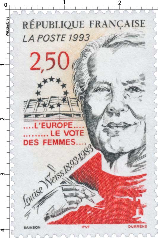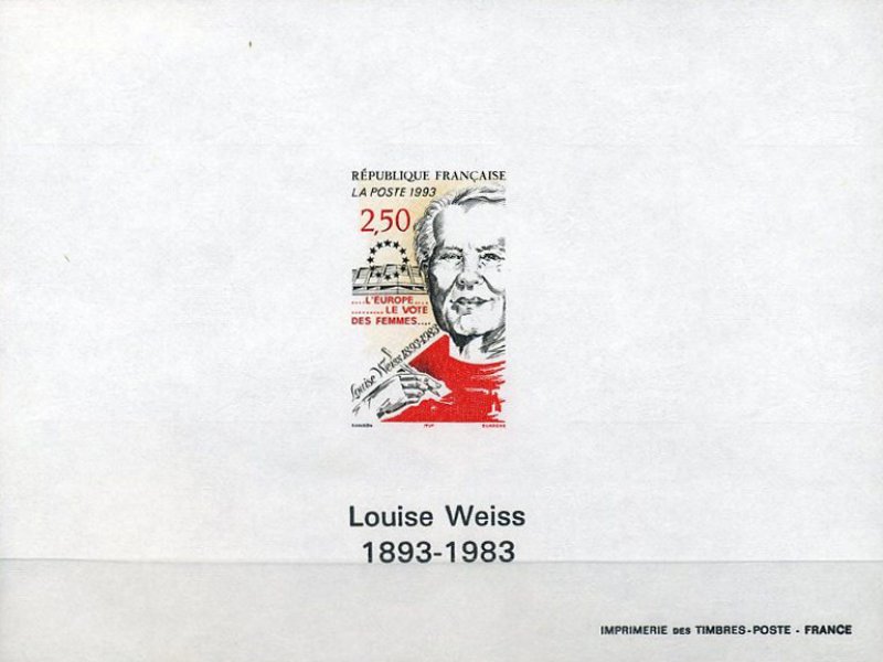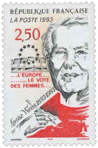 | Description | Centenaire de la naissance et 10e anniversaire de la mort de Louise Weiss (1893-1983), journaliste, écrivain et femme politique, née à Arras |