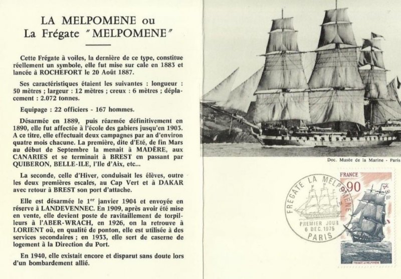 | Description | Frégate La Melpomène. Construite à Rochefort de 1883, elle était navire école des gabiers. De 1893 à 1904, elle embarque chaque année les élèves de la marine marchande |