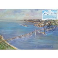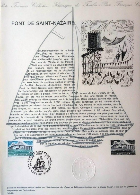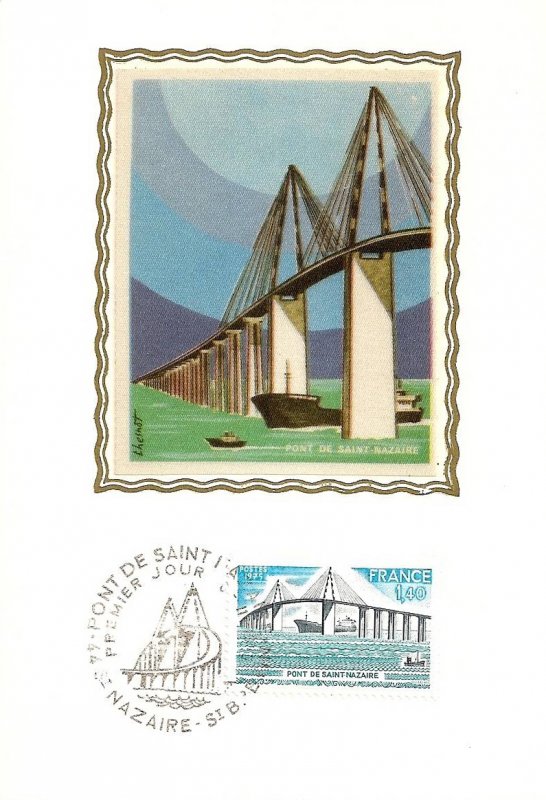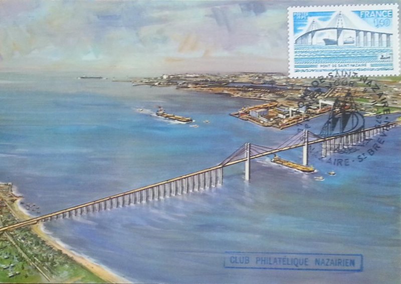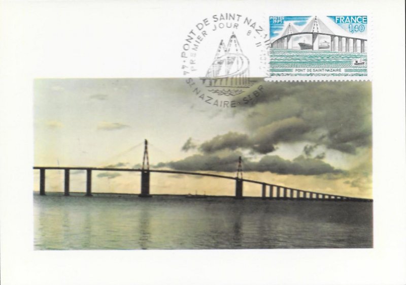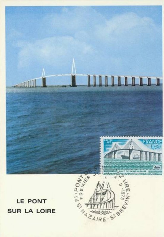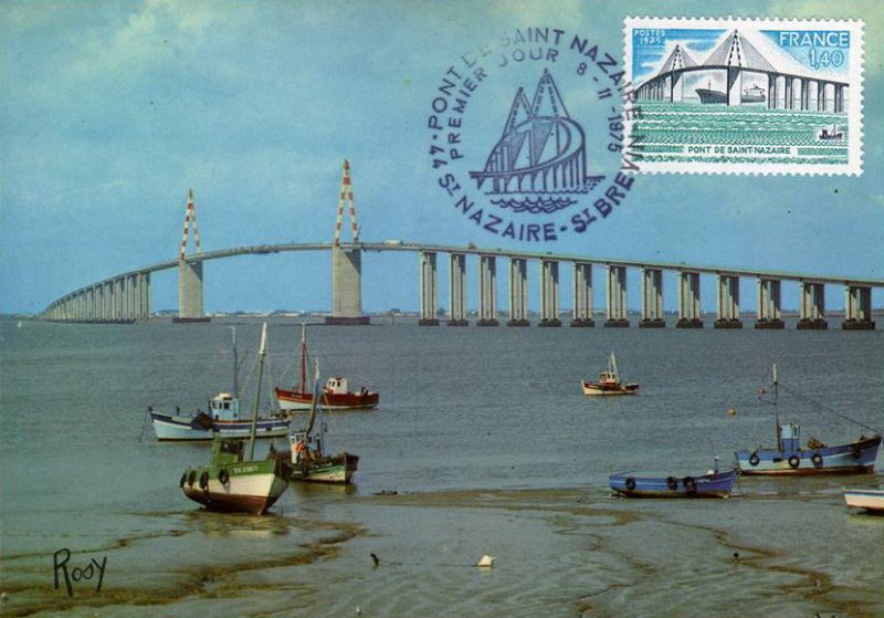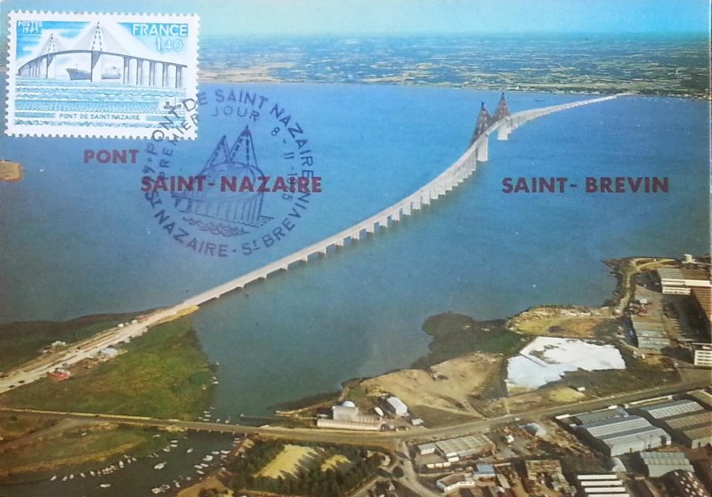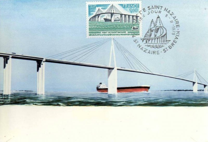 | Commentaire | Visuel : L'ouvrage métallique haubané mesure 720 m, et avec les viaducs d'accès, cela représentent une longueur totale de 3 356 m, le plus long pont de France. Portée principale de 404 m, largeur de 13,5 m et hauteur de 68 m. L'ouvrage est mis en service le 18 oct. 1975. Chaque soir, de remarquables illuminations mettent en scène l'élégante structure de ce prestigieux édifice. |