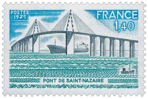 | Commentaire | Visuel : L'ouvrage métallique haubané mesure 720 m, et avec les viaducs d'accès, cela représentent une longueur totale de 3 356 m, le plus long pont de France. Portée principale de 404 m, largeur de 13,5 m et hauteur de 68 m. L'ouvrage est mis en service le 18 oct. 1975. Chaque soir, de remarquables illuminations mettent en scène l'élégante structure de ce prestigieux édifice. Émis en France en novembre 1975, le timbre consacré au pont de Saint-Nazaire accompagne l’achèvement et la mise en service d’un ouvrage majeur d’ingénierie civile destiné à transformer durablement les échanges au niveau de l’estuaire de la Loire. Jusqu’alors, le franchissement du fleuve entre Nantes et l’océan reposait essentiellement sur des bacs, solution devenue insuffisante face à l’augmentation rapide du trafic automobile et au développement économique de la façade atlantique. La construction du pont, confiée à une société d’économie mixte associant capitaux publics et privés, répond à cette contrainte structurelle en établissant une liaison permanente entre Saint-Nazaire et Saint-Brévin-les-Pins. L’ouvrage, long de plus de trois kilomètres, se distingue par son tablier métallique à haubans, soutenu par deux pylônes élancés, et par un tirant d’air permettant le passage des plus grands navires fréquentant l’estuaire. Le timbre restitue cette prouesse technique par une gravure en taille-douce qui met en valeur les lignes tendues du pont et son intégration dans un paysage maritime et industriel caractéristique de la région. Au-delà de l’exploit architectural, l’émission souligne l’impact économique et social de l’infrastructure, appelée à renforcer la cohésion territoriale entre les deux rives, à faciliter l’accès aux zones portuaires et industrielles, et à soutenir l’essor des activités du pays de Retz et de la côte de Jade. Le choix de ce sujet s’inscrit dans une tradition philatélique française attentive aux grands équipements nationaux, perçus comme des symboles de modernisation et d’aménagement du territoire. En 1975, à une période marquée par l’affirmation des politiques d’infrastructures, ce timbre illustre le rôle du timbre-poste comme vecteur de valorisation des réalisations techniques contemporaines, tout en fixant dans la mémoire collective l’image d’un ouvrage devenu emblématique de l’estuaire ligérien. Article rédigé pour WikiTimbres |