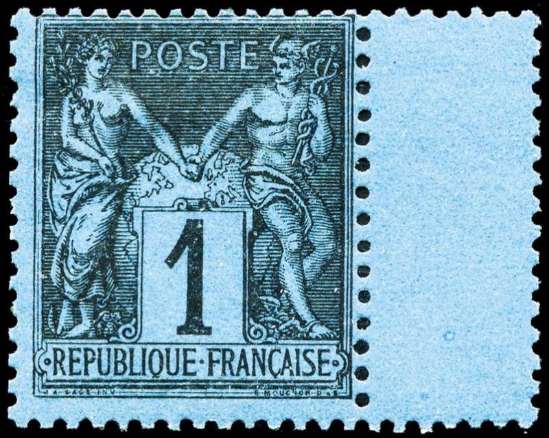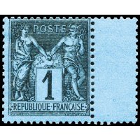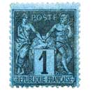 | Commentaire | Sage. Type II (N sous U). En savoir plus sur Wikipédia : Type sage ou allégorie de la Paix et le Commerce s’unissant Émis en août 1880, le timbre Sage type II de 1 franc noir sur bleu de Prusse constitue l’une des plus fortes valeurs faciales de la série Sage. Destiné aux affranchissements internationaux lourds, aux envois recommandés et au courrier commercial de valeur, il occupe une place importante dans les timbres classiques français de la période 1876-1900. La teinte bleu de Prusse présente plusieurs nuances authentiques selon les tirages, allant du bleu profond légèrement grisé à un bleu plus soutenu. En oblitéré, les cachets à date des grands bureaux traitant du courrier extérieur UPU sont les plus courants, tandis que les plis réellement affranchis à 1 franc restent rares et très recherchés. Aucun faux d’époque notable n’est signalé, et cette valeur ne fait pas partie des réimpressions Granet. |