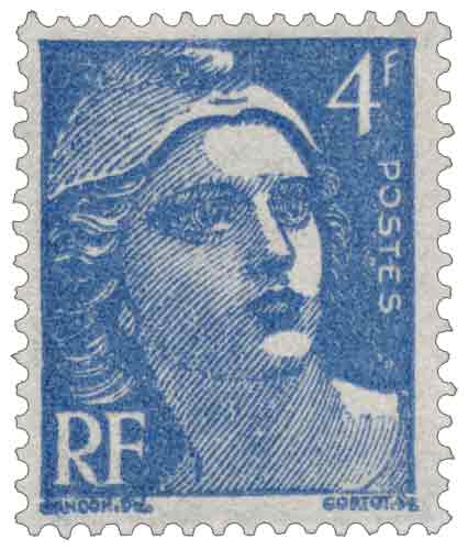 | Commentaire | Le timbre gommé de 1945 « Marianne de Gandon » à 4 francs outremer appartient à la série définitive mise en place après la Libération afin d’accompagner la réorganisation durable des services postaux français. Mis en vente le 14 juin 1945, il correspond au tarif de la lettre jusqu’à 100 grammes pour l’intérieur, soit le troisième échelon de poids, et sert également de complément pour les services de recommandation et d’avis de réception. Cette valeur intermédiaire répond aux besoins d’un trafic postal en forte reprise dans un contexte de reconstruction économique et administrative. Le choix de la Marianne, figure allégorique de la République, confirme la volonté de continuité institutionnelle et de réaffirmation des symboles républicains après la guerre. Le dessin de Pierre Gandon, gravé par Henri Cortot et imprimé en typographie rotative, illustre le retour à des procédés industriels éprouvés, permettant une production de masse adaptée aux usages courants, comme en témoigne son tirage élevé. |