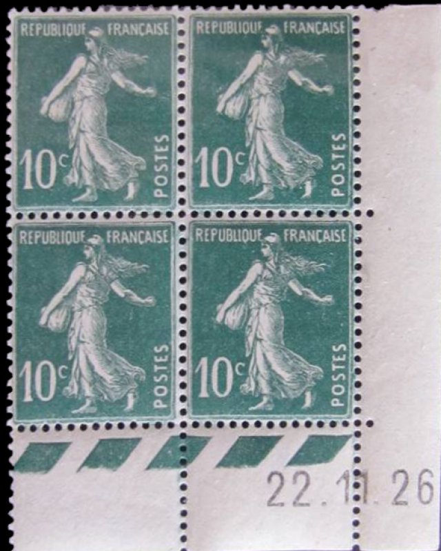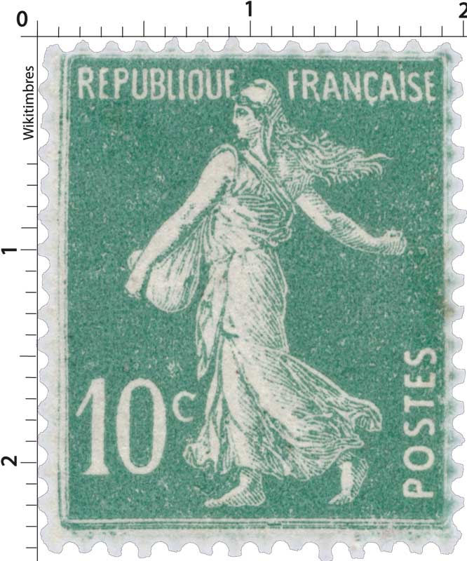 | Commentaire | Semeuse camée. Type III. Voir la vidéo "Histoires de timbres" En savoir plus sur Wikipédia : semeuse camée Émis en février 1922, le timbre Semeuse fond plein à inscriptions grasses de 10 centimes vert (Yvert & Tellier n°159) appartient à la dernière période d’utilisation du type Semeuse camée avant la généralisation des types modernisés des années 1920. Dessiné par Louis-Oscar Roty et gravé par Louis-Eugène Mouchon, il est imprimé en typographie, dentelé 14 × 13½ et présenté en feuilles de 150 timbres. Cette version se distingue par ses inscriptions épaissies, typiques des tirages tardifs : une modification liée aux ajustements des ateliers d’impression, qui donne au timbre une allure plus lourde dans les légendes. Ce détail permet de différencier le tirage de 1922 des émissions antérieures du même type. Le timbre a circulé jusqu’entre 1923 et 1929, période où la valeur de 10 centimes reste essentielle pour le courrier intérieur. Il constitue un élément représentatif de la transition postale française de l’entre-deux-guerres, marquée par la simplification progressive des types d’usage courant. |