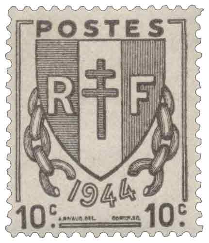 | Commentaire | Émis en France en 1945, le timbre gommé de la série courante dite Chaînes brisées à 10 centimes brun-noir s’inscrit dans la reprise progressive du service postal après la Libération, sa faible valeur faciale correspondant à l’affranchissement des journaux, un usage essentiel dans le contexte de rétablissement de l’information imprimée ; cette émission de février 1945 appartient aux séries courantes de l’après-guerre, imprimées en typographie rotative pour répondre à des besoins massifs de diffusion, et se caractérise par une iconographie symbolique directement liée à la fin de l’Occupation, tandis qu’un élément notable et historiquement établi est le retour explicite de la mention « RF » sur les timbres français, absente durant le régime de Vichy, marquant ainsi la restauration républicaine dans la production philatélique nationale. |