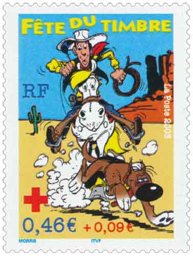 | Description | Fête du timbre. Avec surtaxe, chevauchée dans le far west avec Rantanplan. Émis en carnet. |