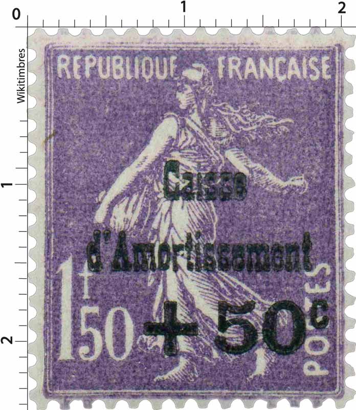 Émission emblématique de la politique budgétaire française de l’entre-deux-guerres, cette Semeuse fond plein surchargée (+50 c sur 1 f 50) s’inscrit dans la dernière phase des émissions destinées à alimenter la Caisse d’Amortissement, organisme créé pour absorber la dette laissée par la Première Guerre mondiale. Comme pour les autres surtaxes de 1930, l’administration postale n’a pas créé une nouvelle maquette : elle a réutilisé la Semeuse fond plein de Roty et Mouchon, dont la lisibilité, la rigueur graphique et la notoriété garantissaient une reconnaissance immédiate.