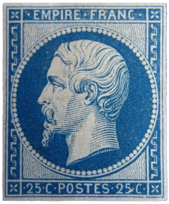| Commentaire | Napoléon III - Empire Franc.1er tirage. Retiré de la vente le 30 juin 1854 suite à une baisse des tarifs postaux Émis en décembre 1853, le 25 centimes bleu au type Napoléon III remplace le 25 c « Présidence » pour l’affranchissement des lettres territoriales de moins de 7,5 g. Il s’inscrit dans la transition engagée après la modification de la légende des timbres, décidée en janvier 1853, lorsque la mention « REPUB FRANC » disparaît au profit de « EMPIRE FRANC » à la suite de la proclamation de Napoléon III. Le poinçon utilisé pour cette valeur est celui dérivé de l’émission Présidence, retouché par Jean-Jacques Barre : l’initiale « B », visible sous le cou sur les premières émissions, est désormais supprimée. Le dessin conserve le médaillon de profil tourné vers la gauche, entouré du cadre ornemental caractéristique des premières émissions impériales. Imprimé en typographie et non dentelé, le 25 c bleu remplit un rôle essentiel durant quelques mois seulement. En effet, la loi du 25 mai 1854, qui abaisse les tarifs postaux, rend cette valeur obsolète : elle est remplacée au 1er juillet 1854 par le 20 c bleu, devenu tarif unique pour la lettre simple jusqu’à 7,5 g. Cette durée d’usage réduite d’environ huit mois explique la relative rareté des affranchissements authentiques. Le timbre apparaît principalement oblitéré du losange Petits Chiffres, en cohérence avec les pratiques en vigueur depuis 1852. Il s’agit de l’une des valeurs les plus emblématiques de la courte période où coexistent encore les émissions Présidence et les premières émissions impériales. |